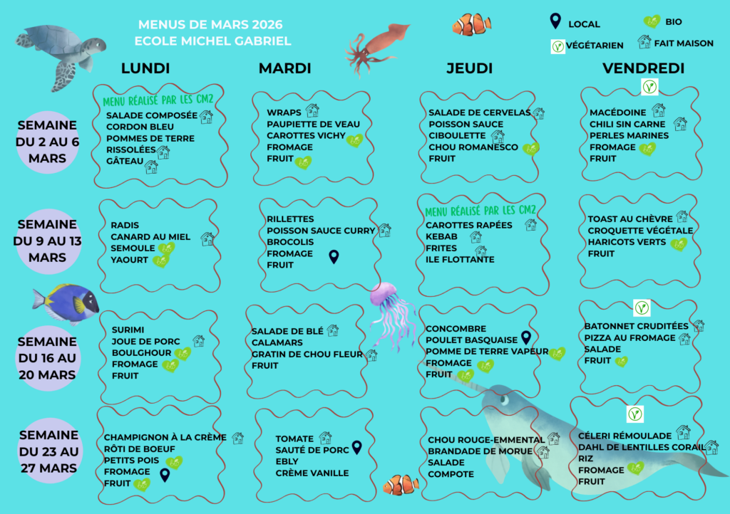 Cantine scolaire : les menus de mars 2026