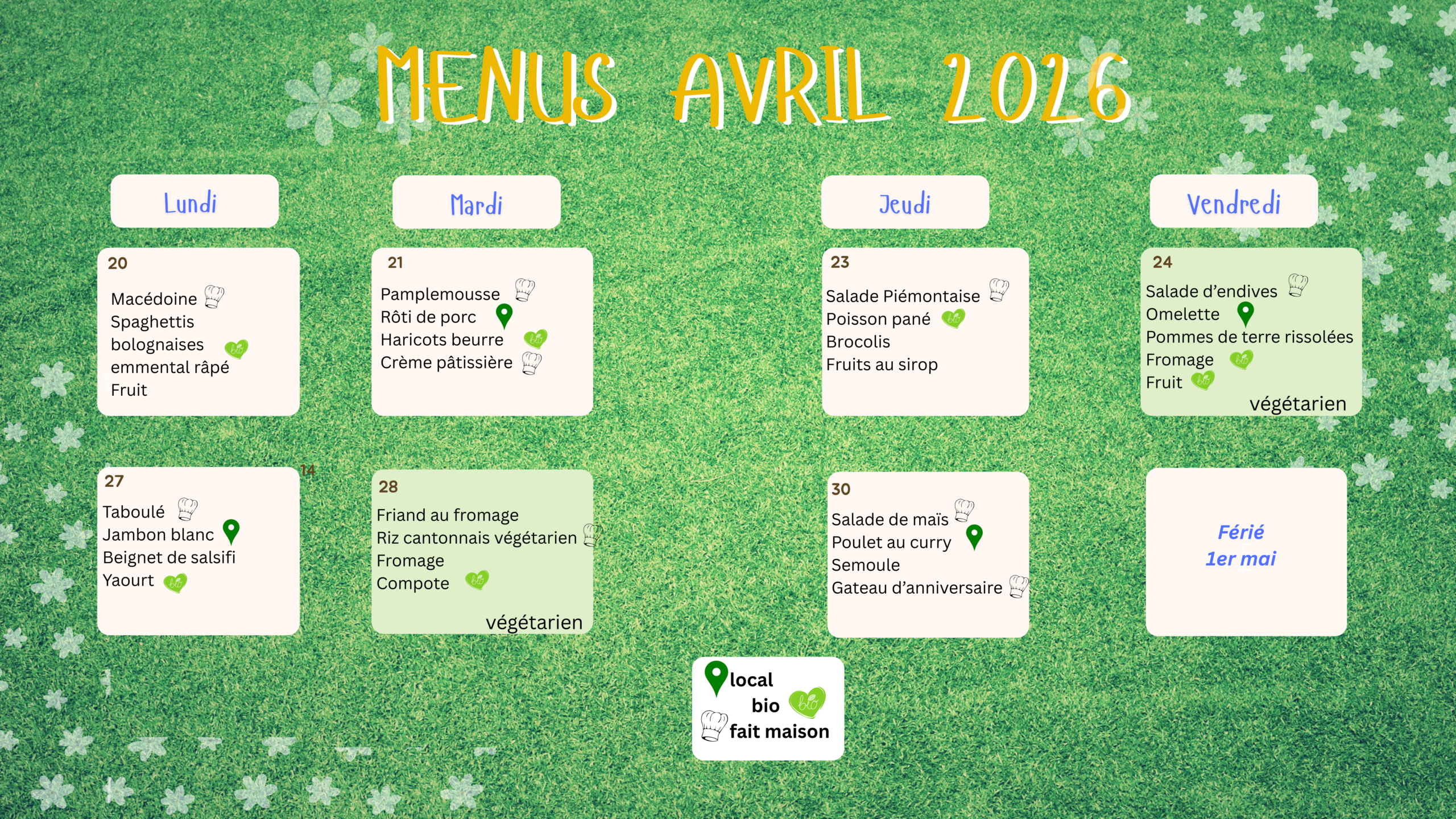 Cantine scolaire : les menus de mars 2026